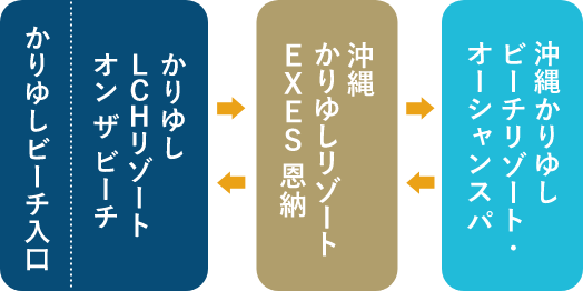 沖縄かりゆしビーチリゾート・オーシャンスパからかりゆしビーチまでの区間 をシャトルバスが無料運行しております。