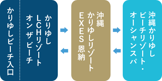 沖縄かりゆしビーチリゾート・オーシャンスパからかりゆしビーチまでの区間 をシャトルバスが無料運行しております。